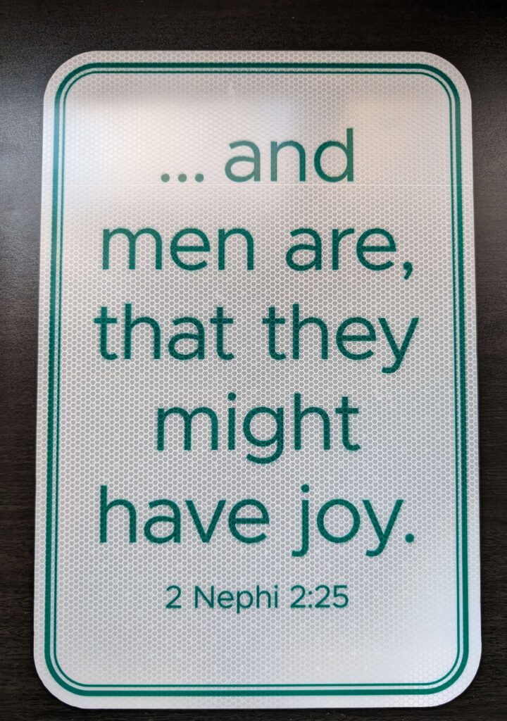Hello! Turn your favorite inspiring message from the Bible or Book of Mormon into a unique road sign. We can help you design a custom sign that reflects your faith and values.